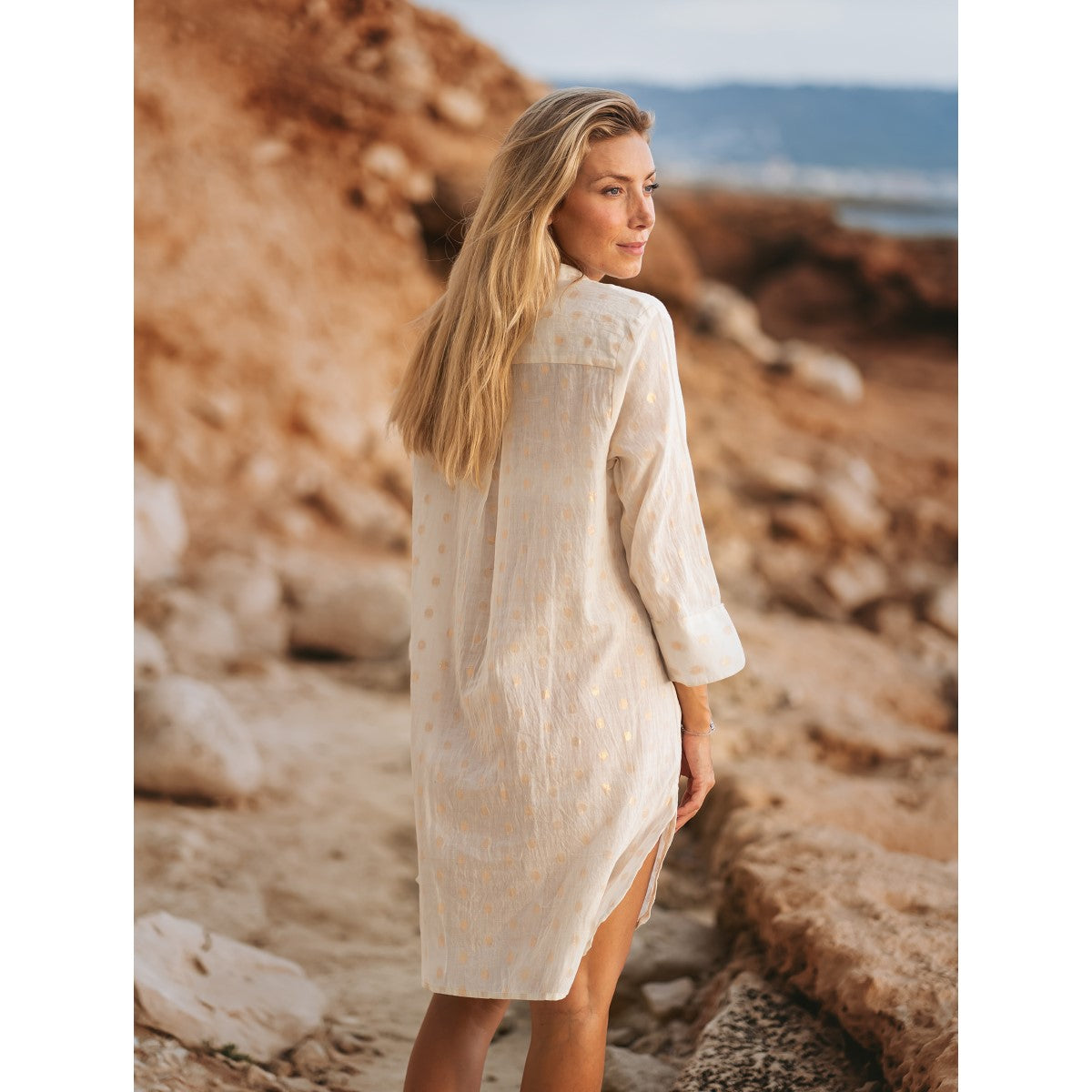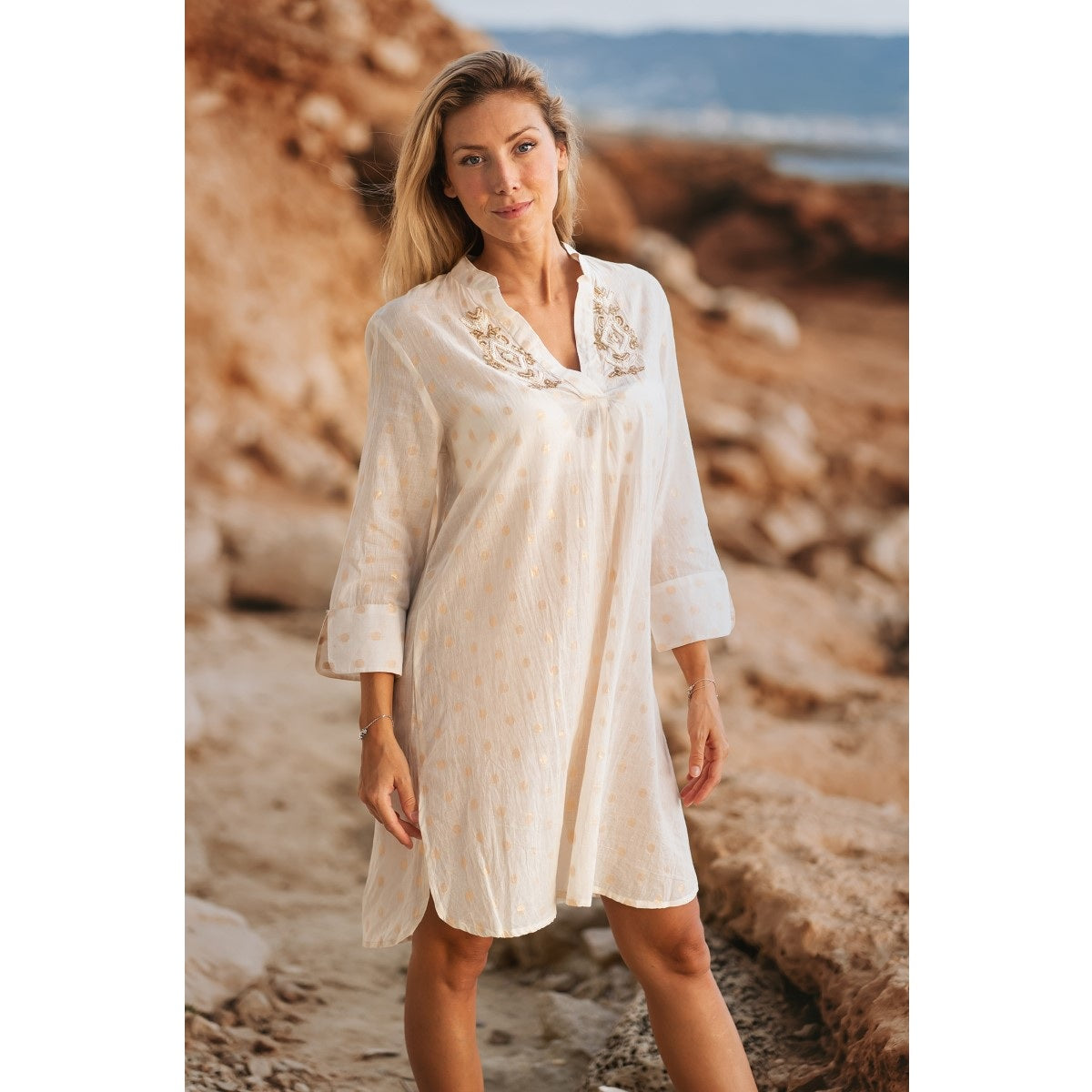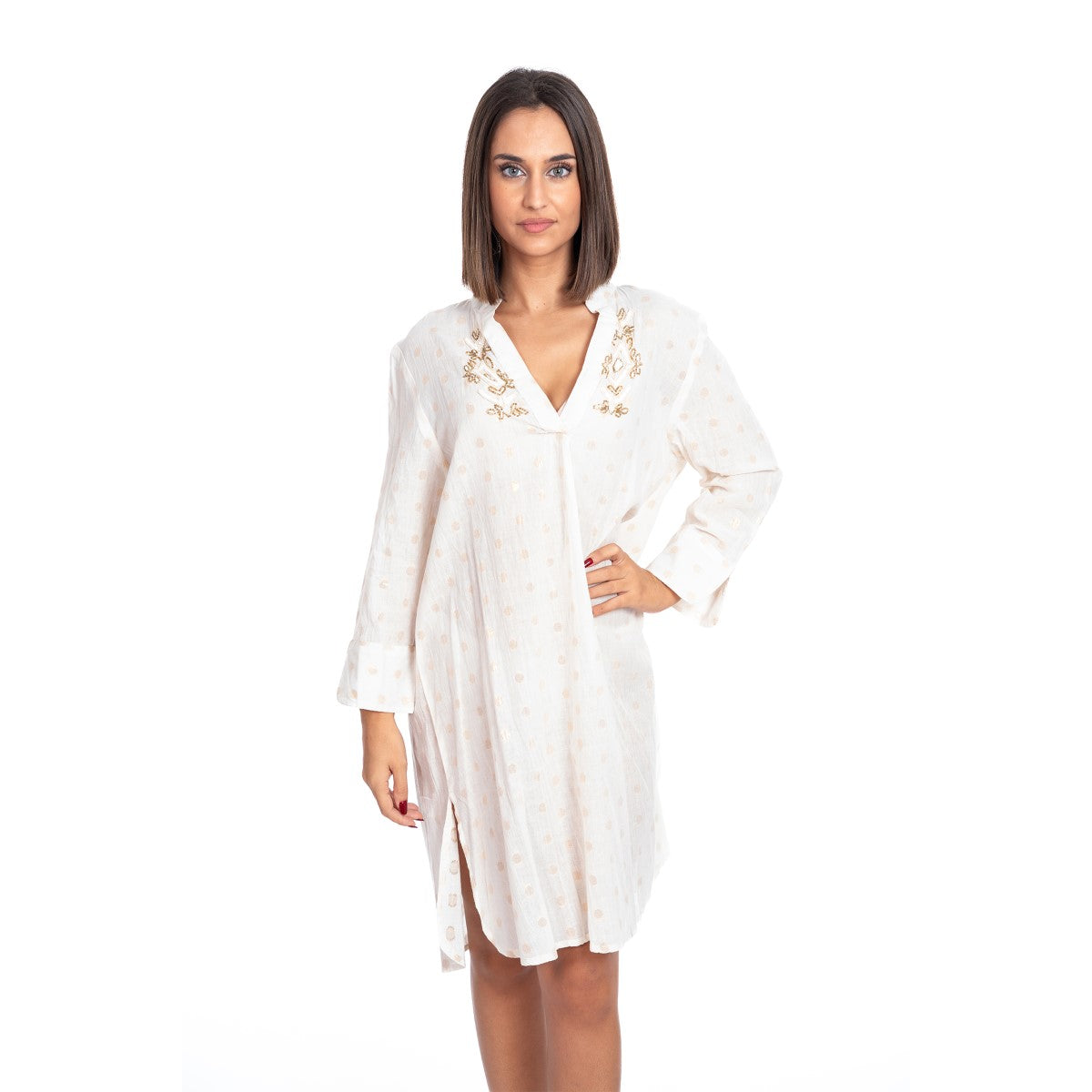 Dress 100% Cotton - White / Gold